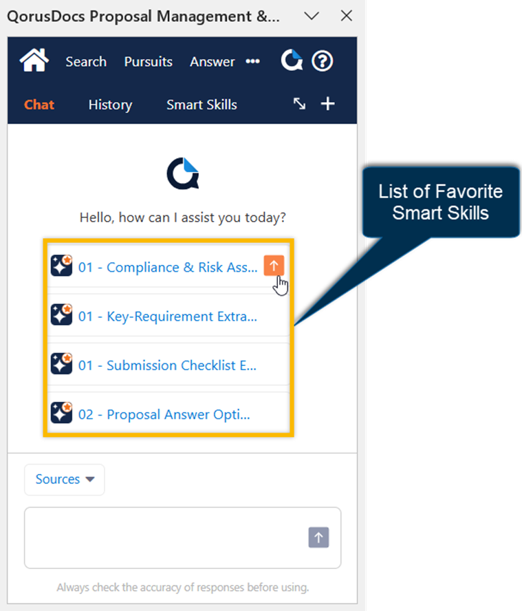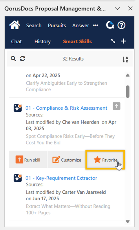 By favoriting a Smart Skill, you ensure that it appears in QPilot’s chat tab, ready for immediate use whenever you start a new QPilot session.