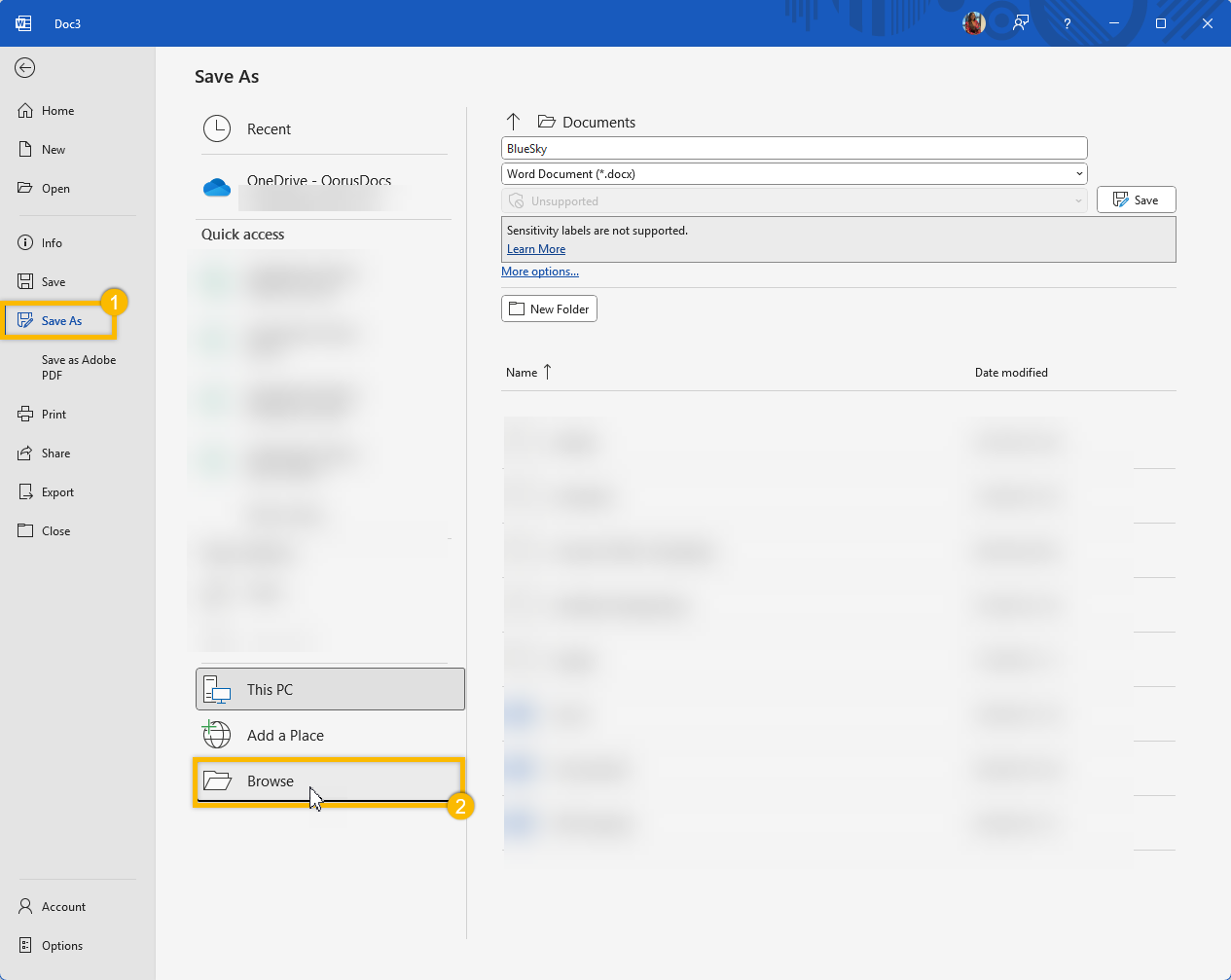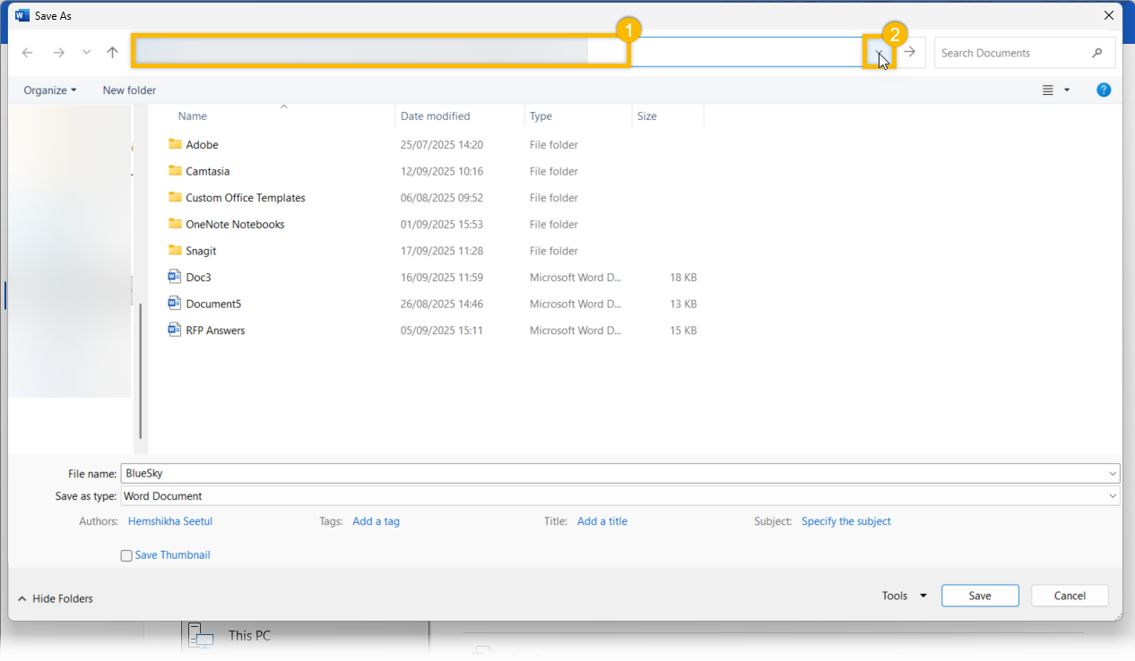 When you’re there, go ahead and save your document to that location. You can also put it in a folder if you’d like: