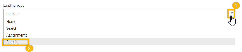 You can update a user's landing page by selecting their preferred option from the ‘Landing Page’ drop-down menu: